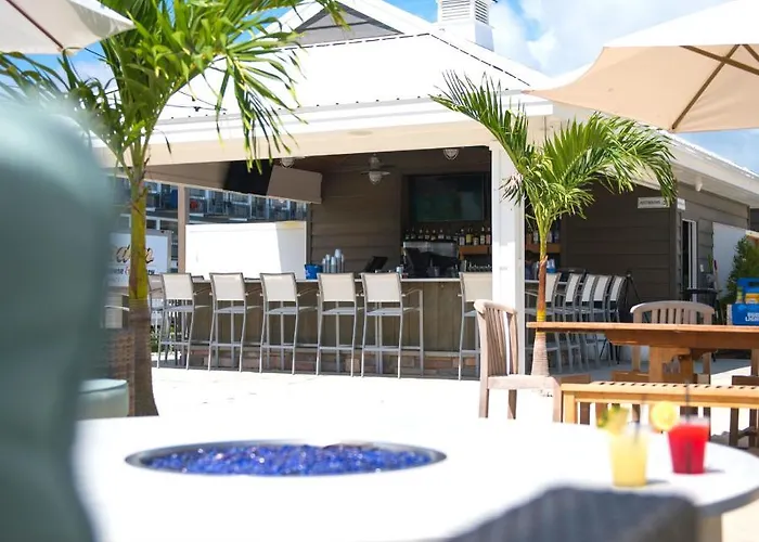 Culinary options include the Avalon Brew Pub, offering a gastropub-style menu and craft beers brewed on-site. Guests can also dine at The Sandbar Village Beach Bar, serving tropical cocktails and live music. Shimmers Bistro provides breakfast items in a cozy atmosphere with a library nook.